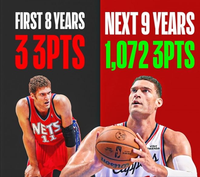 NBA作为代表全球最高水平的篮球殿堂,每年有那么多怀揣梦想的年轻人逐梦而来,又有那么多人遭遇大浪淘沙、黯然退场。全联盟总共也就那么400来个席位,想要站稳脚跟就很不容易了,能在联盟摸爬滚打十余年的,那更是凤毛麟角,都是有点真本事的。比如,布鲁克-洛佩兹就是很典型的,适应时代潮流转型的成功案例。别看如今的洛佩兹如今有三分投射,也有扎实的护筐,生涯初期,这两项他都不沾边。